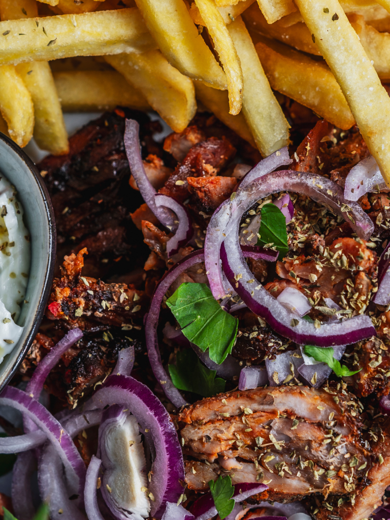 Zartes, würzig mariniertes Fleisch, goldbraun gegrillt und mit Zaziki, Pommes und frischem Salat serviert – unser Gyros ist ein echter Publikumsliebling. Außen knusprig, innen saftig und mit viel Liebe zubereitet – so schmeckt griechische Küche bei uns im Restaurant Kreta Meitingen.